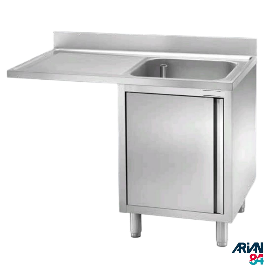 Lavello acciaio inox armadiato, con sgocciolatoio a sbalzo (altezza max sotto sbalzo 86 cm), ad 1 vasca misura cm 60×50 h30 (disponibile sia a destra che a sinistra in base all’esigenza), misura cm 140×70 h85.