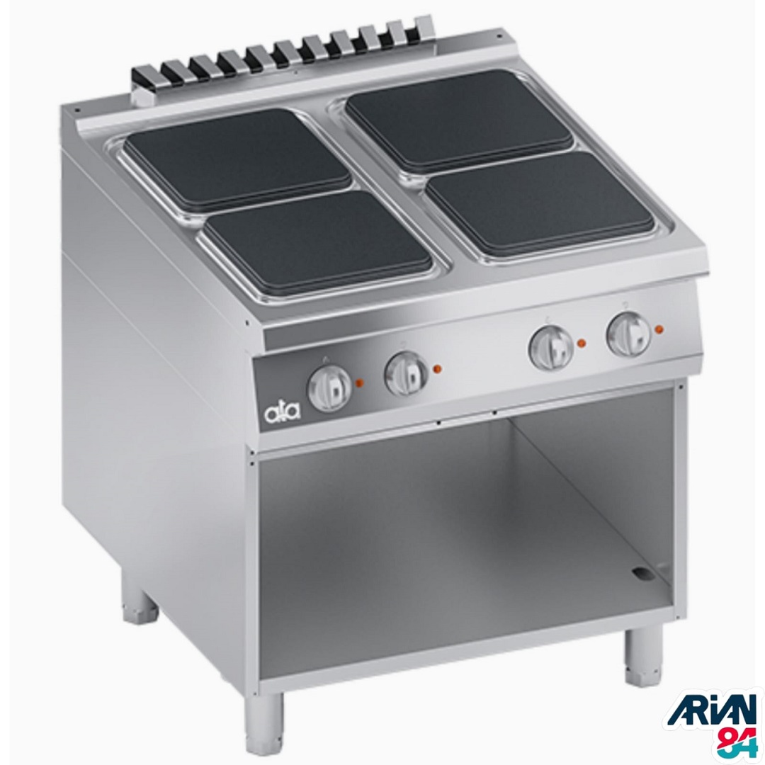 Cucina elettrica a 4 piastre quadre su vano aperto marca ATA, mod. K4ECUP10VV PERFORMANCE, misure larghezza cm 80, profondità cm 90, altezza cm 85.