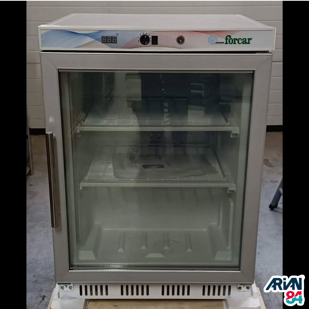 Freezer Forcar nuovo da esposizione, con struttura esterna in lamiera verniciata epossidica bianca, interno ABS e refrigerazione statica con ventilatore interno per uniformare la temperatura, con due ripiani fissi , capacità 130 LT, volt 220 assorbimento kW 0,27, misure ingombro larghezza cm 60, profondità cm 58,5, altezza cm 85,5, ideale anche come sottotavolo, disponibili 4 pezzi, € 500 cad (oltre iva su fattura)