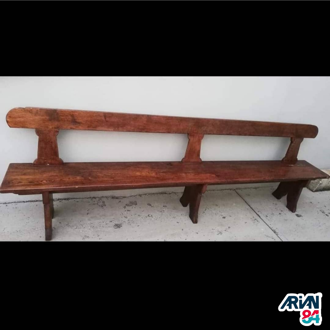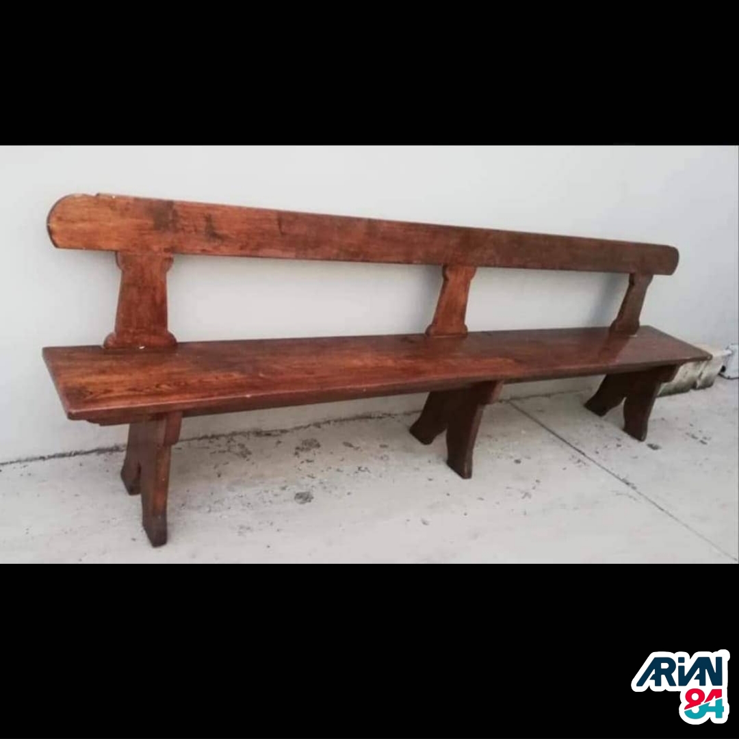 Panca in legno massiccio usata, lunghezza cm 300, altezza della seduta da terra cm 47,5, spessore tavole della seduta e dello schienale cm 3 e delle gambe cm 4, € 150 (oltre iva su fattura)